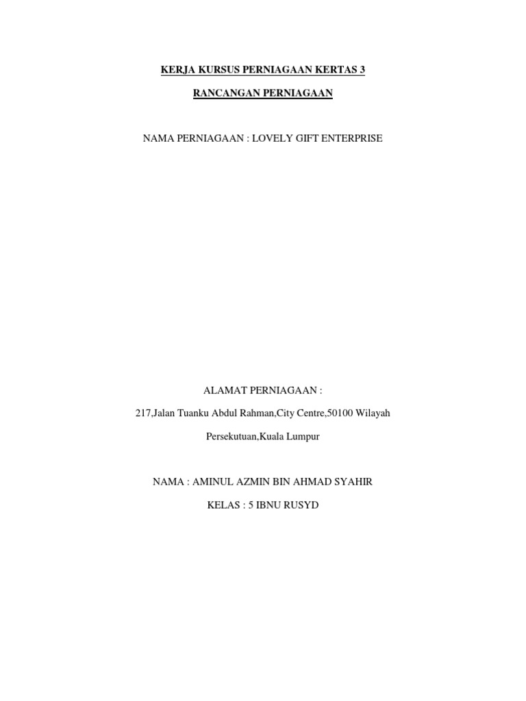 Doc Contoh Kertas Kerja Rancangan Perniagaan Shahrin Hamid Academia Edu from 0.academia-photos.com Dapatkan diskaun, tip, peluang, jaringan perniagaan serta beberapa manfaat lain. Contoh kerja kursus sejarah pt3 tingkatan 3 2021. Sesiapa nak boleh dapatkan di bawah ini. Contoh perniagaan tingkatan 5 kerja kursus 2020 2. Tidak lupa juga, pengkaji ingin mengucapkan ribuan terima. Baca soalan dengan teliti latar belakang perniagaan. Peluang perniagaan dan pendapatan sampingan dengan jual burger bakar. Contoh susun atur rancangan perniagaan spm 2020 was published by zakmar.bea4621 on 2020 04 28.